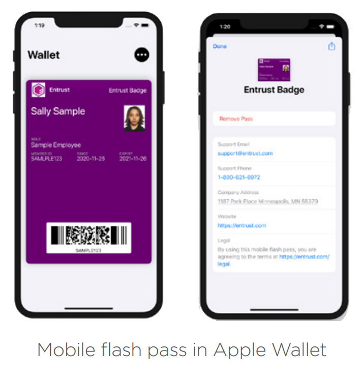 Entrust Instant ID as a Service (IIDaaSTM) is enabling this convergence of digital and physical credentials through support of the mobile flash pass. This enables you to issue digital badges to your end-users that include biographic data as well as a photograph and/or bar code.