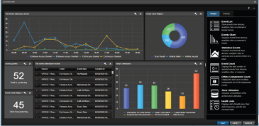 - Dashboard – View security events and system health in custom-made visual boards that fits your operational needs.