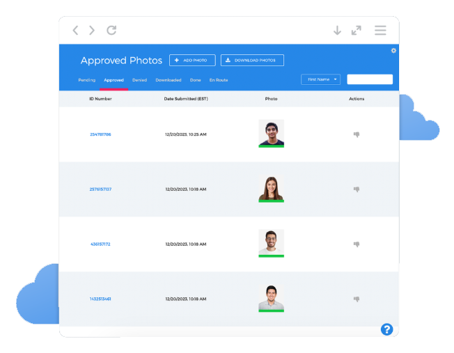 Automate photo approvals and denials with HelperBot, our AI that handles the review process for you. Badge holders are instantly notified if their photo meets ID card requirements. Prefer a hands-on approach? You can always review and process photos manually.