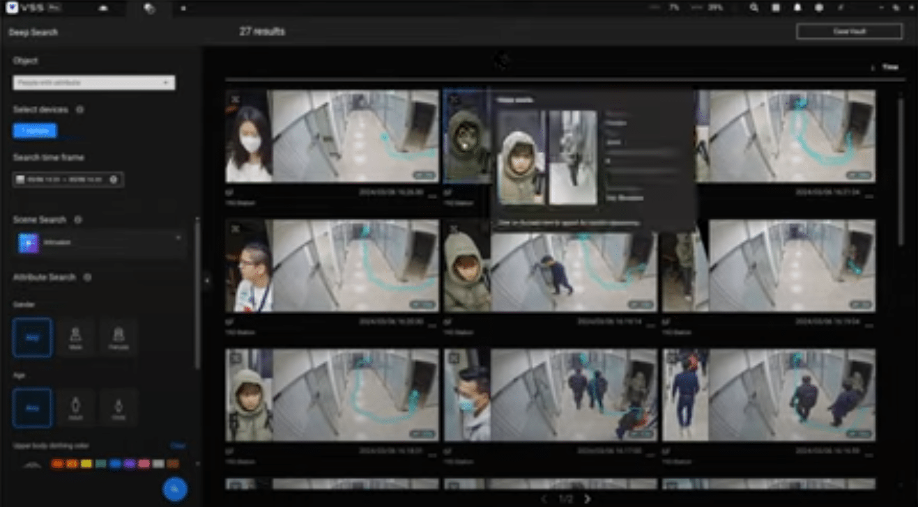 Elevate your surveillance capabilities with VAST Security Station (VSS). Our powerful Deep Search technology streamlines investigations by rapidly identifying people and vehicles in recorded footage using attributes, movement paths, and even look-alike matching. Forget the tedious process of scanning through countless frames — Deep Search makes finding critical information fast, efficient, and effortless.